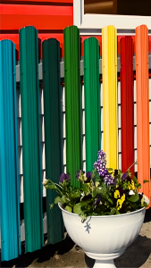 Весь цветной профнастил, штакетник и черепица, которые вы видите вокруг, сделаны, как раз, из стали с покрытием полиэстером. Такое покрытие хорошо защищает сталь от коррозии, но требует бережной эксплуатации. В этом случае такой забор прослужит вам не один десяток лет.